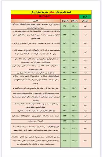 جدول خاموشی احتمالی ایذه چهارشنبه ۲۲ مردادماه